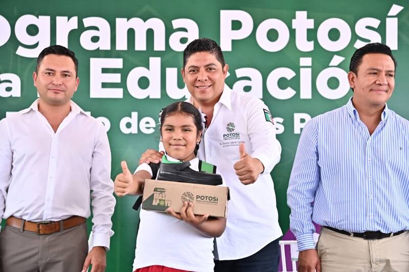 El programa Potosí para la Educación entrega a nivel estatal 300 mil mochilas, 150 mil pares de zapatos y más de 220 mil útiles escolares, para mejorar la educación básica pública en el Estado de San Luis Potosí, del sistema educativo estatal y federalizado.